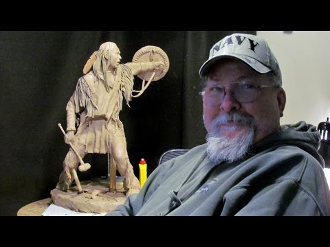 I sold a full set of my Instructional DVDs to a fella who dropped by my studio in my new house today. Rick Smith is from Georgia, and he came by to watch me sculpt a bit and then we went on a tour of the Ruby Valley and Virginia City and Nevada City, Old Gold Rush Towns over the mountain from where I live. I fine tuned a feather in wax and then painted it to look like the clay. I had another feather that was already finished that I painted as well. It was all the time I had to do these two feathers. Next video, Hair and Feathers.